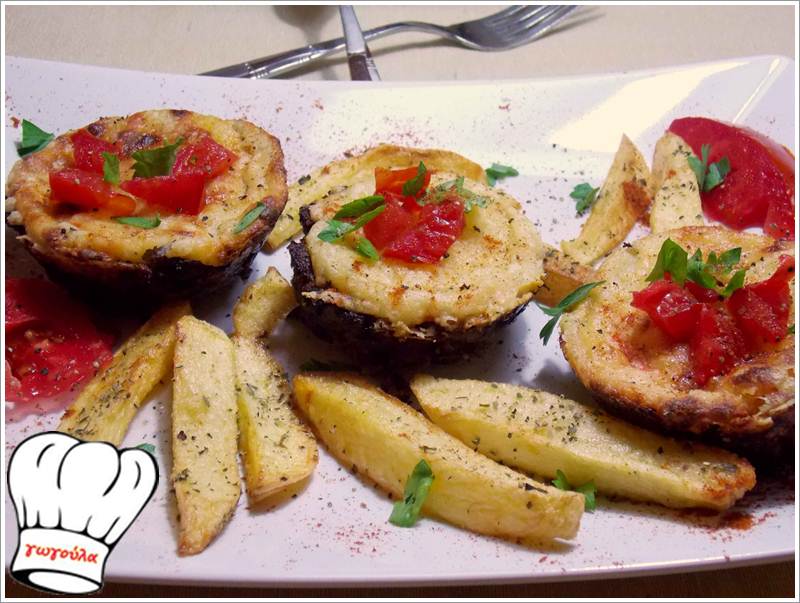 Κατοπιν τα αφαιρουμε τα γεμιζουμε με τα τυρια στο κεντρο τους,η'μπεσαμελ και ψηνουμε μεχρι να παρουν χρωμα τυρια και μπεσαμελ.Αφηνουμε λιγο να σταθουν,και με μαχαιρακι προσπαθουμε κυκλικα να τα ξεκολλησουμε απο τα πλαινα. Σερβιρουμε με πατατουλες τηγανιτες και σαλατα εποχης. Ιδανικα και για μπουφε,παρτυ γενεθλιων.