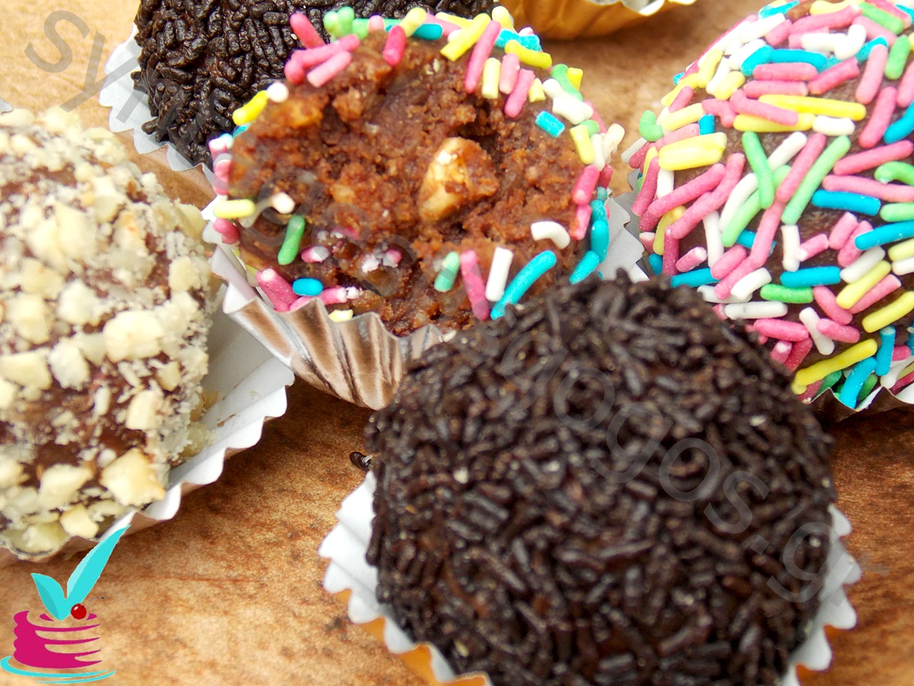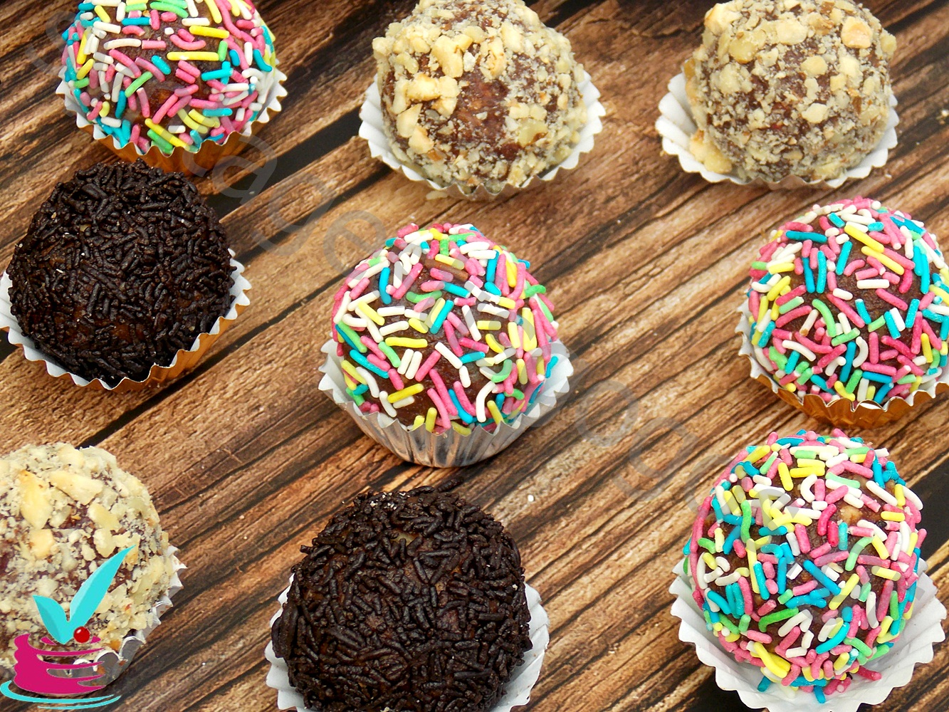 και τα πασπαλιζουμε με τρουφα σοκολατας η' χρωματιστη, καθως επισης τα πασπαλιζουμε με τριμμενους ξηρους καρπους η'κουβερτουρα σε νυφαδες.Τα διατηρουμε στο ψυγειο μας.